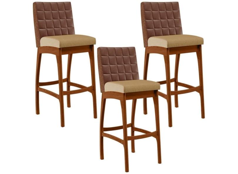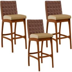 Kit 03 Banquetas Altas Mila Marrom Linho Bege Escuro