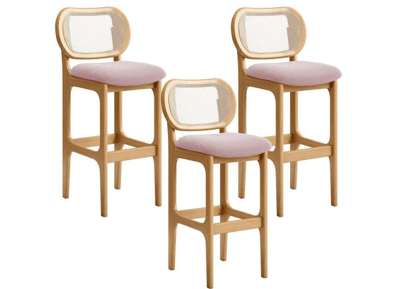 Kit 03 Banquetas Altas Para Cozinha Bancada Sala Tela Betta Fixa L02 Bouclê Rosê - Lyam