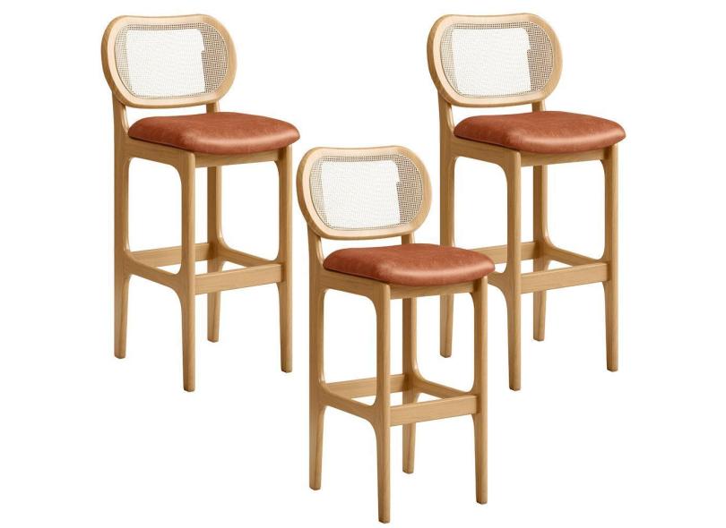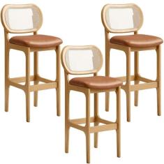 Kit 03 Banquetas Altas Para Cozinha Bancada Sala Tela Betta Fixa L02 Couríssimo Camel - Lyam