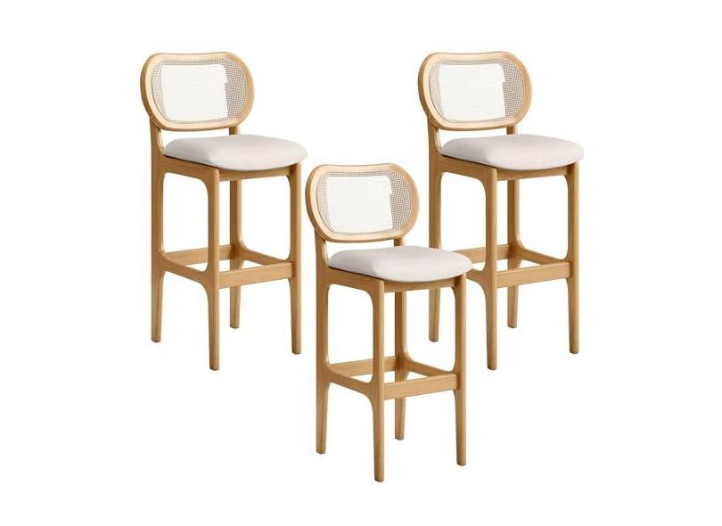 Kit 03 Banquetas Altas Para Cozinha Bancada Sala Tela Betta Fixa L02 Linho Cru - Lyam