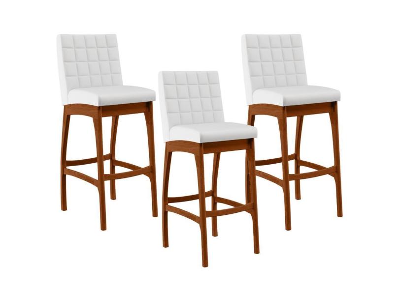 Kit 03 Banquetas Altas Para Cozinha Sala de Jantar Fixa Mila B04 Facto Branco Fosco - Lyam Decor
