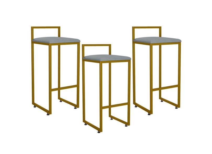 O menor preço encontrado no Brasil para Kit 03 Banquetas Altas Para Cozinha Sala De Jantar Hanna L02 Dourado Suede Cinza - Lyam Decor atualmente é R$ 765,32.