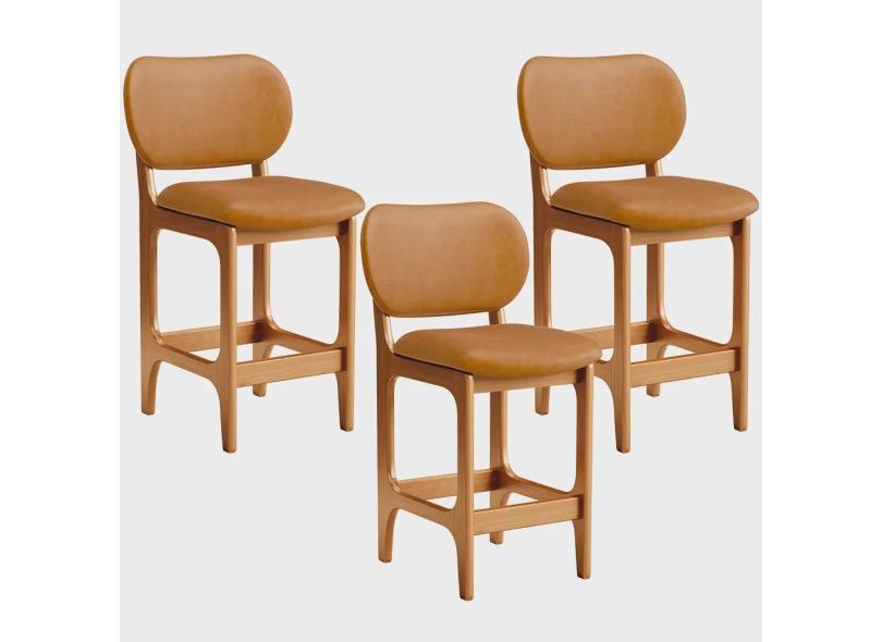 Kit 03 Banquetas Baixa Bar Cozinha E Sala De Jantar Fixa Betta L02 Imbuia Couríssimo Whisky - Lyam Decor