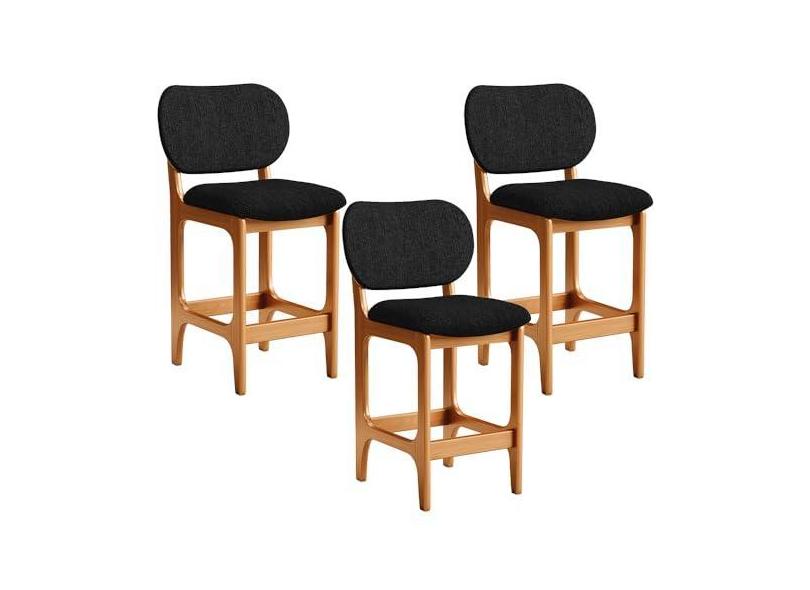 Kit 03 Banquetas Baixa Bar Cozinha E Sala De Jantar Fixa Betta L02 Imbuia Linho Chumbo - Lyam Decor