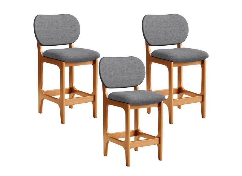 Kit 03 Banquetas Baixa Bar Cozinha E Sala De Jantar Fixa Betta L02 Imbuia Linho Cinza Escuro