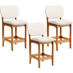Kit 03 Banquetas Baixa Bar Cozinha E Sala De Jantar Fixa Betta L02 Imbuia Linho Cru - Lyam Decor