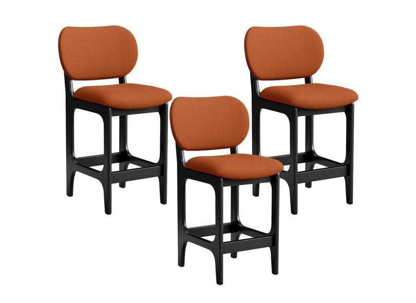Kit 03 Banquetas Baixa Bar Cozinha E Sala De Jantar Fixa Betta Preto Tecido Terracota - Lyam Decor
