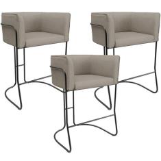 Kit 03 Banquetas Baixa Base de Aço Preto Betina D02 Linho Bege D-463 - Lyam Decor