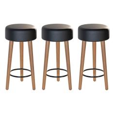 Kit 03 Banquetas Baixa Cozinha Paris D-33 Preto