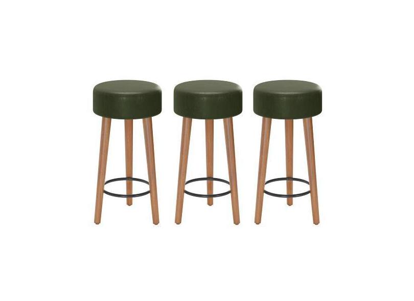 Kit 03 Banquetas Baixa Cozinha Paris Estofada D-33 Pés de Madeira Rosq