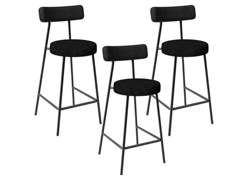 Kit 03 Banquetas Baixa Cozinha Sala Jantar Bancada Milão L02 Couríssimo Preto Linho Chumbo