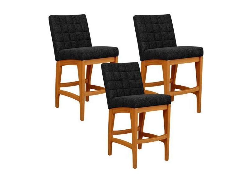 Kit 03 Banquetas Baixa Para Cozinha Bancada Bar Sala Jantar Fixa Mila