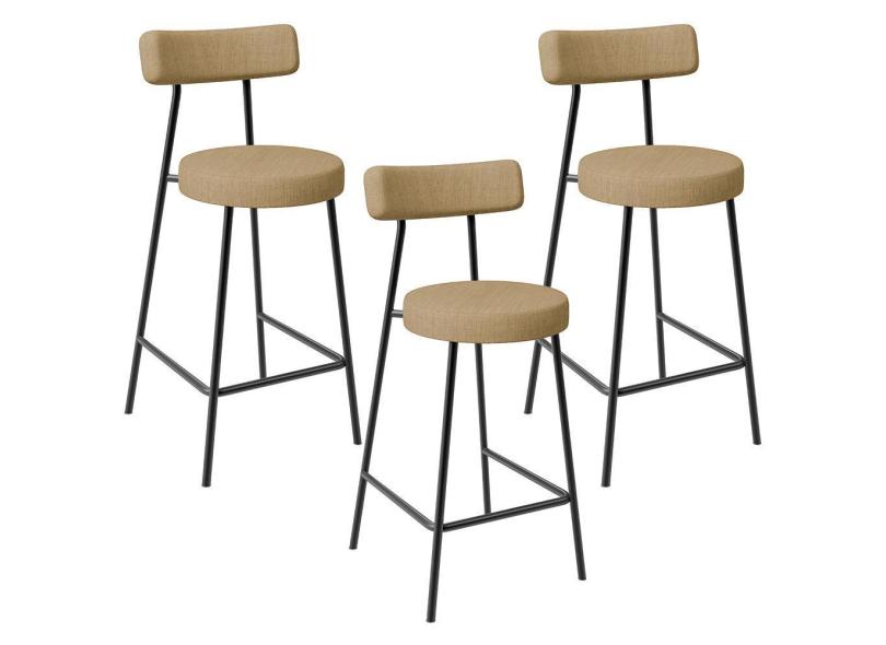 Kit 03 Banquetas Baixa Para Cozinha Sala De Jantar Bancada Milão L02 Linho Bege Escuro - Lyam Decor