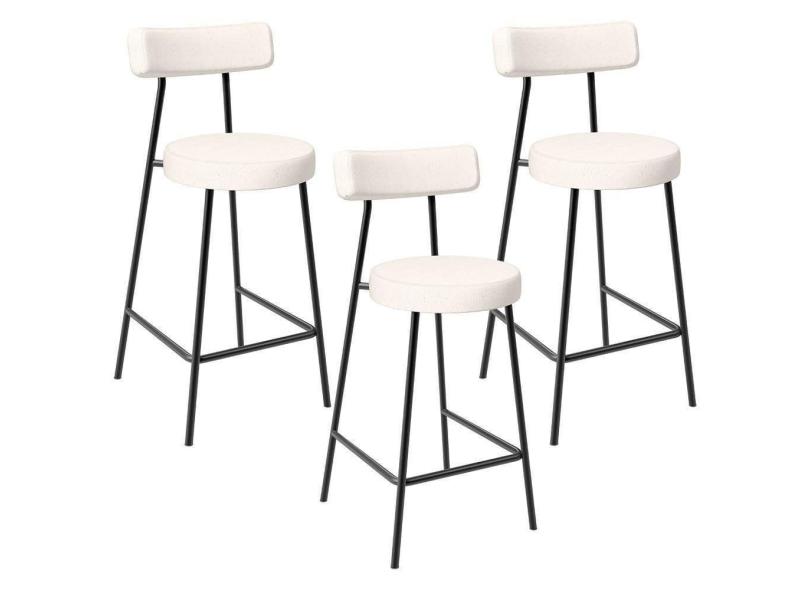 Kit 03 Banquetas Baixa Para Cozinha Sala De Jantar Bancada Milão L02 Linho Cru