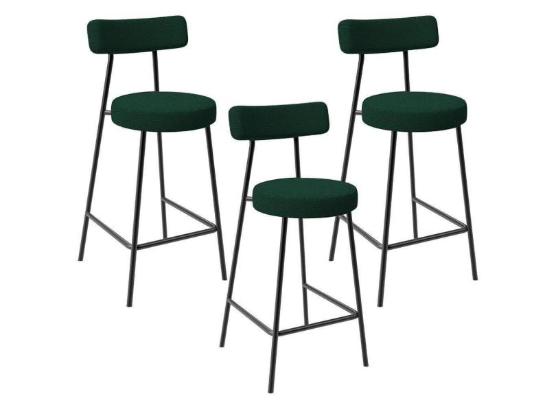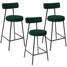 Kit 03 Banquetas Baixa Para Cozinha Sala De Jantar Bar Bancada Milão L02 Bouclê Verde