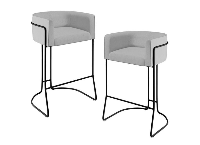 Kit 03 Banquetas Fixa Preto Linho Cinza D-315