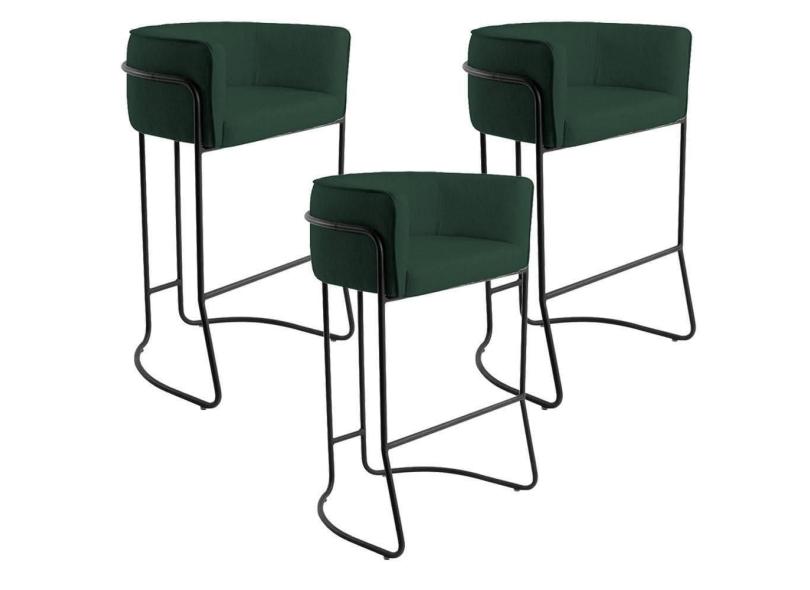 Kit 03 Banquetas Fixa Preto Linho Verde Musgo C-117
