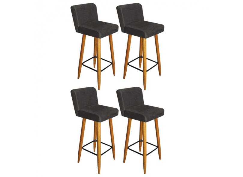 Kit 04 Banqueta Alta Com Encosto Lana Para Cozinha Bar Balcão Bistrô Pé Palito Castanho Suede - Ahazzo Móveis
