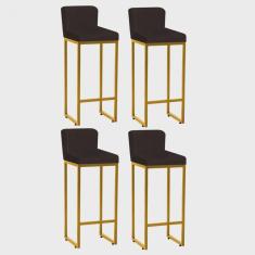 Kit 04 Banqueta Alta Com Encosto Lucca Industrial Cozinha Balcão Ferro