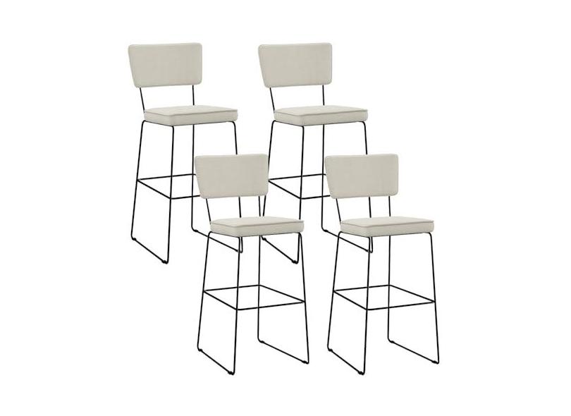 Kit 04 Banquetas Alta Cozinha Sala De Jantar Base Aço Fixa Allana L02 Linho Champagne - Lyam Decor