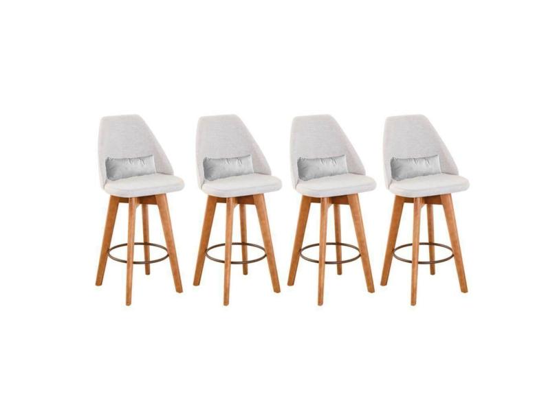 O menor preço encontrado no Brasil para Kit 04 Banquetas Alta Maya Giratória Com Encosto Gourmet Linho Bege e Almofada Corino Branco - Aurora Line atualmente é R$ 3.599,42.