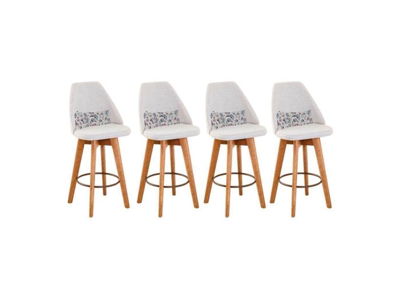 Kit 04 Banquetas Alta Maya Giratória Com Encosto Gourmet Linho Bege e Almofada Flores - Aurora Line