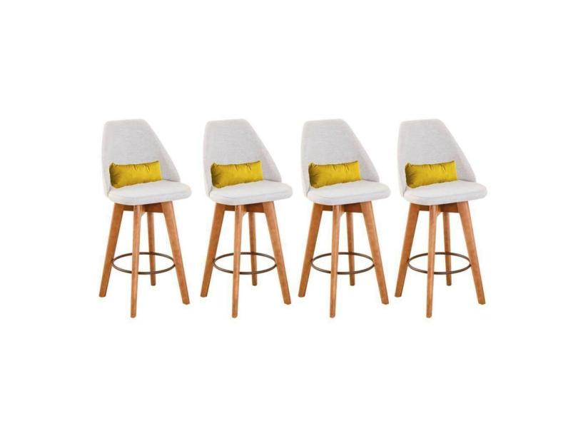 Kit 04 Banquetas Alta Maya Giratória Com Encosto Gourmet Linho Bege e Almofada Sintético Amarelo - Aurora Line