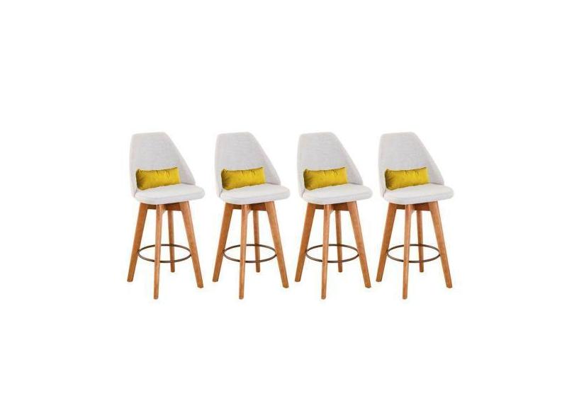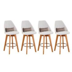Kit 04 Banquetas Alta Maya Giratória Com Encosto Linho Bege Claro E Al