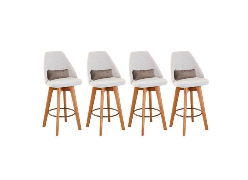 Kit 04 Banquetas Alta Maya Giratória Com Encosto Linho Bege Claro e Almofada Sintético Bege - Aurora Line