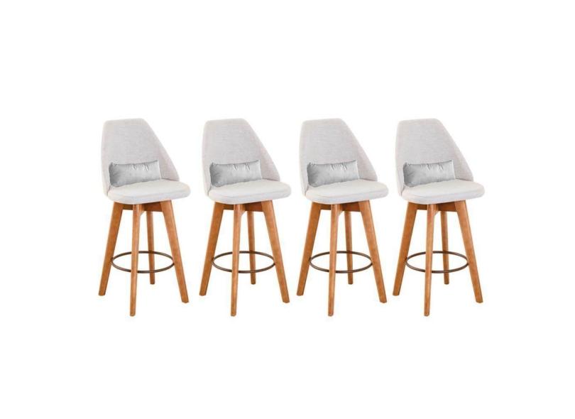 O menor preço encontrado no Brasil para Kit 04 Banquetas Alta Maya Giratória Com Encosto Linho Bege Claro e Almofada Suede Branco - Aurora Line atualmente é R$ 3.599,42.