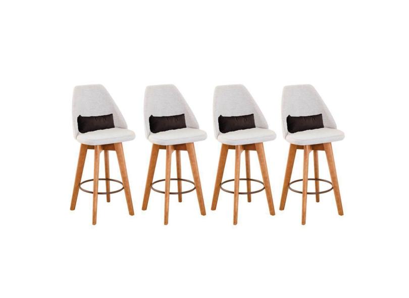 Kit 04 Banquetas Alta Maya Giratória Com Encosto Linho Bege Claro e Almofada Suede Marrom - Aurora Line