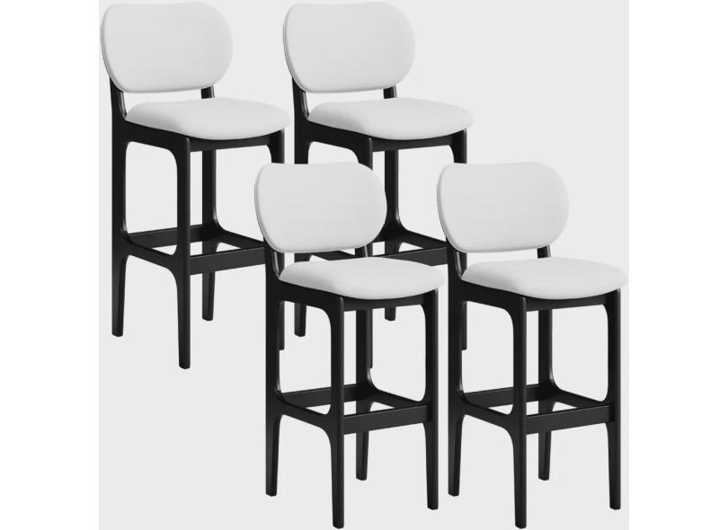 Kit 04 Banquetas Alta Para Cozinha Madeira Fixa Betta L02 Preto Facto Branco - Lyam Decor