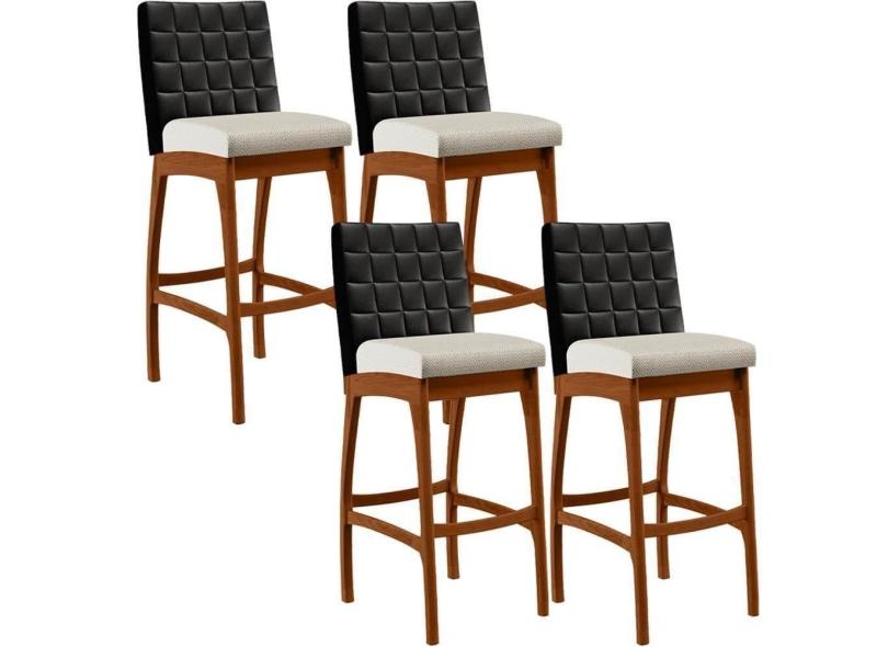 Kit 04 Banquetas Altas B04 Preto Champagne