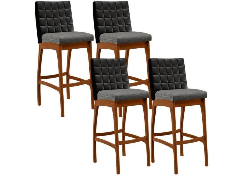 Kit 04 Banquetas Altas B04 Preto Cinza Escuro