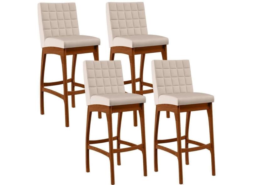 Kit 04 Banquetas Altas Cozinha Mila B04 Suede Bege