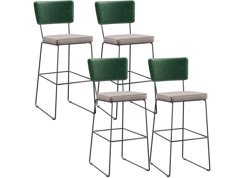 Kit 04 Banquetas Altas Facto Verde Musgo Linho Bege