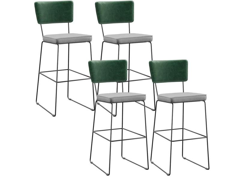 Kit 04 Banquetas Altas Facto Verde Musgo Linho Cinza