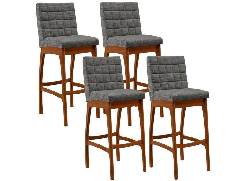 Kit 04 Banquetas Altas Mila Linho Cinza Escuro