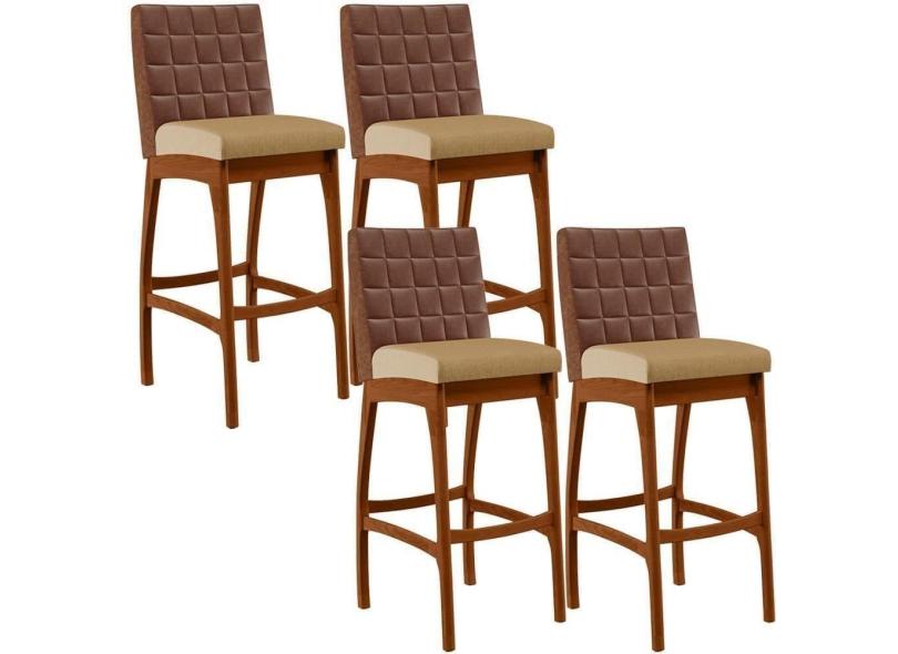 Kit 04 Banquetas Altas Mila Marrom Linho Bege Escuro