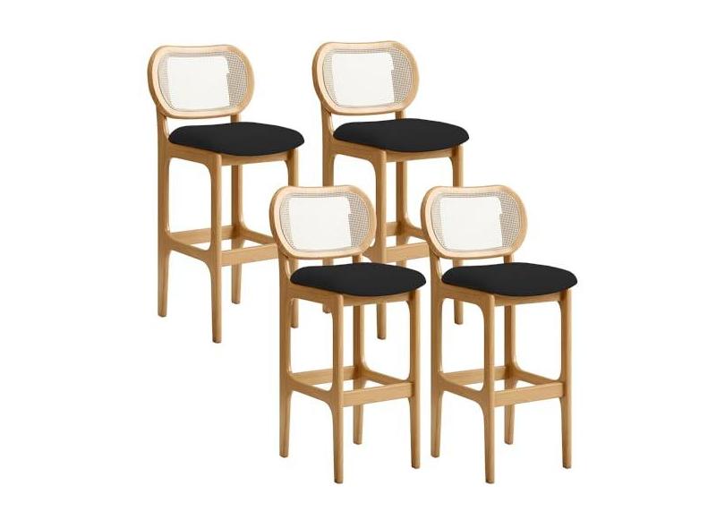 Kit 04 Banquetas Altas Para Cozinha Bancada Sala Tela Betta Fixa L02 Suede Preto - Lyam