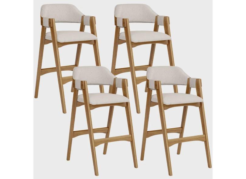 Kit 04 Banquetas Altas Para Cozinha Sala de Jantar Bar Suran L02 Linho Cru - Lyam Decor