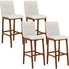 Kit 04 Banquetas Altas Para Cozinha Sala de Jantar Fixa Zoe L02 Linho