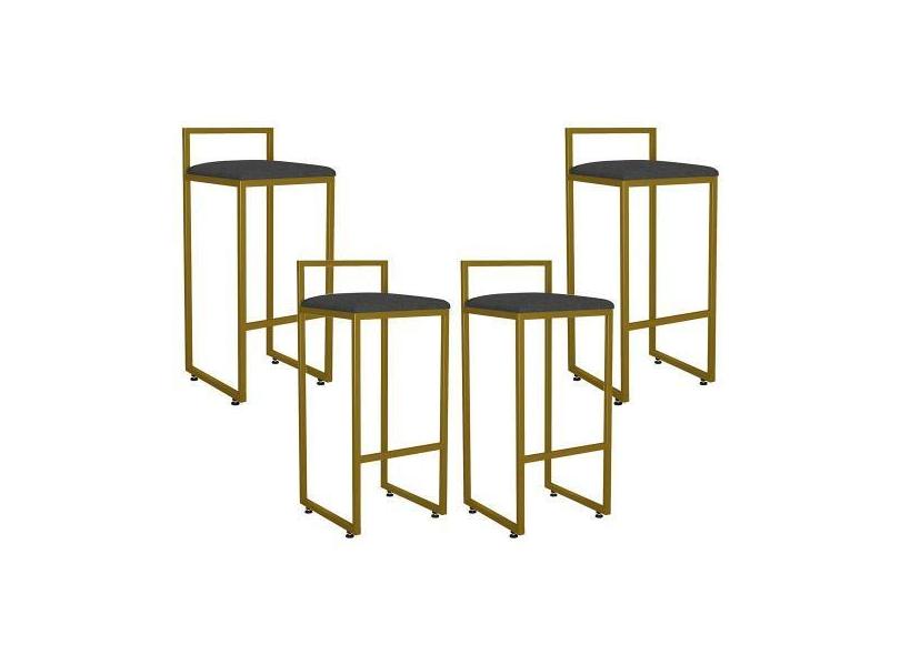 Kit 04 Banquetas Altas Para Cozinha Sala De Jantar Hanna L02 Dourado L