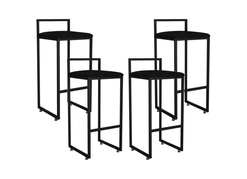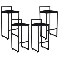 Kit 04 Banquetas Altas Para Cozinha Sala de Jantar Hanna L02 Preto Suede Preto - Lyam Decor