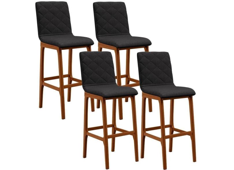Kit 04 Banquetas Altas Zoe Linho Chumbo