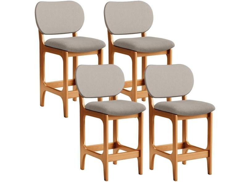 Kit 04 Banquetas Baixa Bar Cozinha E Sala De Jantar Fixa Betta L02 Imbuia Linho Bege