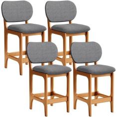 Kit 04 Banquetas Baixa Bar Cozinha E Sala De Jantar Fixa Betta L02 Imbuia Linho Cinza Escuro