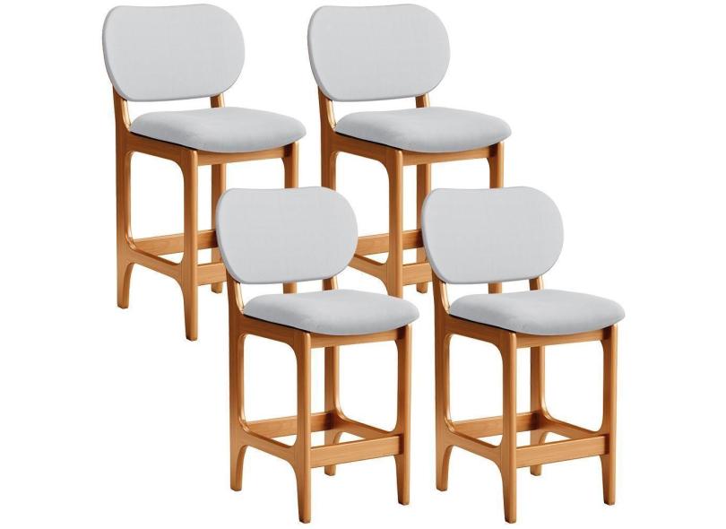 Kit 04 Banquetas Baixa Bar Cozinha E Sala De Jantar Fixa Betta L02 Imbuia Linho Cinza