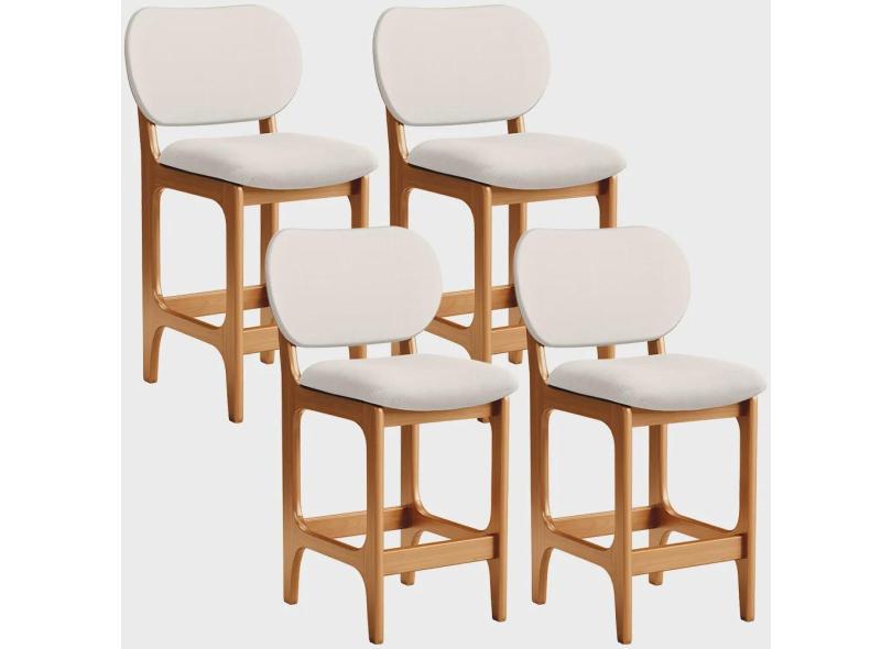 Kit 04 Banquetas Baixa Bar Cozinha E Sala De Jantar Fixa Betta L02 Imbuia Linho Cru - Lyam Decor