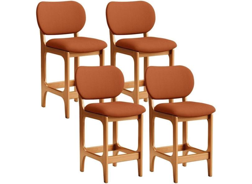 Kit 04 Banquetas Baixa Bar Cozinha E Sala De Jantar Fixa Betta L02 Imbuia Tecido Terracota